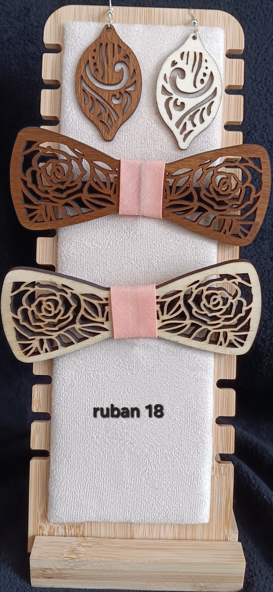 Pour personnaliser votre nœud envoyer nous un message , ou noté dans "commentaire' avant le paiement pour nous donner la couleur du bois, celle du ruban et le texte a graver